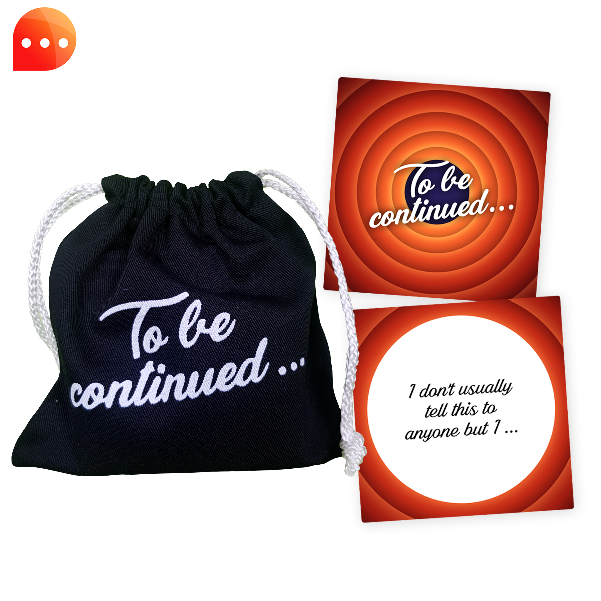 (EN) The game “To be continued…” is a game that encourage conversation, self-knowledge, other people’s knowledge and encourages thinking. The game consists of 75 unfinished sentences and some instruction cards. The set also includes a black, practical and easy-to-use bag to store in the game.